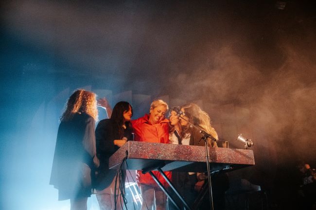 Au rappel, on a découvert un remix très tapageur de la chanson Jouer, avec l’artiste émergente de la scène montréalaise, Le Belladone (elle/iel/il), en duo avec la reine de la soirée.