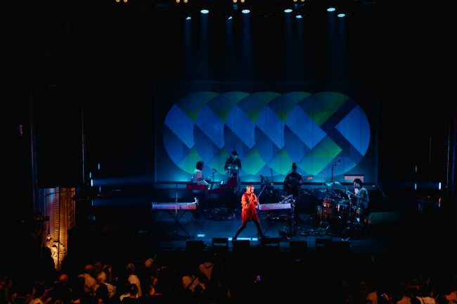 Souriante derrière ses lunettes fumées, la chanteuse est apparue sur scène, vêtue de rouge écarlate et elle a ouvert le bal en interprétant Jouer, l’un de ses nouveaux titres électropop, qui rappelle certaines textures sonores du groupe allemand Kraftwerk. Annonçant ainsi ses couleurs, la chanteuse a poursuivi avec Je veux tout, un succès de 2008 qui tient drôlement bien la route!