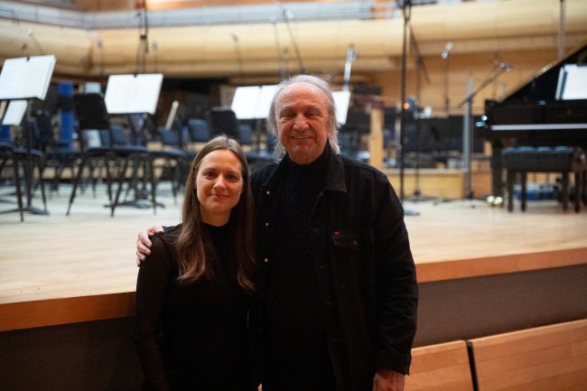 La chef d’orchestre Dina Gilbert et Claude Dubois à la Maison symphonique