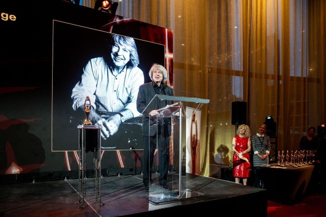 Le sympathique directeur de Odyscène à Gatineau, diffuseur de l’année, est venu au Gala avec une délégation de dix personnes, toutes présentes derrière lui sur l’étroit podium!