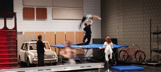 Le spectacle repose d’ailleurs, en partie, sur les huit interprètes de DynamO Théâtre, une compagnie québécoise spécialisée dans la création et la diffusion de spectacles de théâtre axés sur le mouvement acrobatique et le jeu clownesque.
