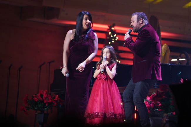 Dans un décor de majestueux sapins illuminés, deux autres invitées viennent souligner le caractère familial de ce spectacle. La chanteuse Manon Séguin, conjointe de Christian Marc Gendron et leur enfant, la petite Kara, 6 ans, s’en donnent à cœur joie dans Mes douze Noëls, version française de The 12 Days of Christmas. Inutile de dire que le public était suspendu aux lèvres de la fillette enjouée et pas du tout intimidée par la foule!
