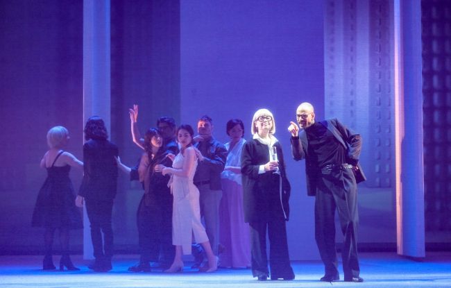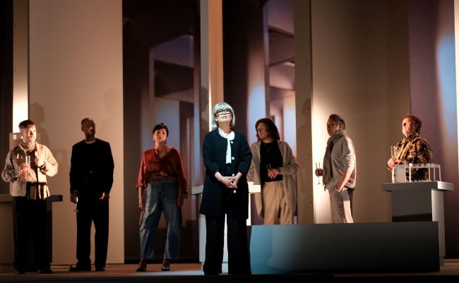 Les éclairages de Julie Basse et le décor de Geneviève Lizotte sont de précieux atouts dans cette production, de même que les images vidéo de Félix Fradet‑Faguy projetées sur de grands panneaux pivotants. Grâce à un ingénieux habillage visuel, on découvre l’imposante tour qui est au cœur du litige.