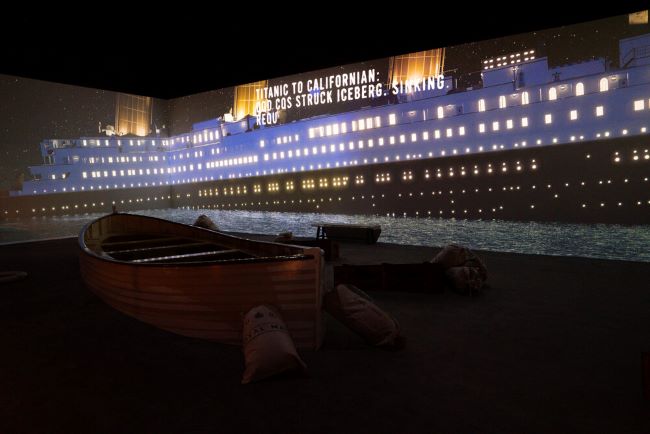 Elles sont réparties au fil d’un parcours qui nous entraîne sur le pont avant du navire, où s’enlaçaient Jack et Rose dans le film Titanic de James Cameron.